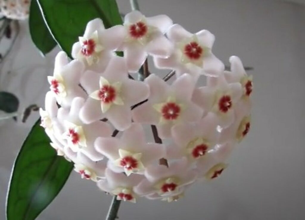 Il fiore di cera è una pianta rampicante i cui fiori emanano un delicato profumo e la loro colorazione è pallida, ma dal centro rosso vivo. L’origine di tale pianta è collocabile nelle isole del Pacifico; quindi si tratta di posti molti caldi.